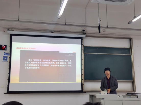 会议第二项内容,薛盛中同志播放了关于“古田会议”的纪录片。“古田会议”选举产生了新的中共红四军前敌委员会,毛泽东当选为书记,这次会议解决了中国共产党在中国特殊国情中建党、建军的历史性难题,对中国革命产生深远影响,因而在中国共产党和工农红军的发展史上有着极其重要的意义。从纪录片中,同志们详细了解了“古田会议”的过程,明白了它对于中国革命的重要意义。