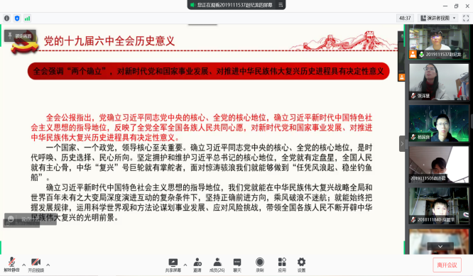 2021年11月18日,由三亿体育本科员工第三党支部开展了“学习党的十九届六中全会精神”主题党日活动,由于疫情防控的要求,这次学习与11月18日16时借助于腾讯会议展开。