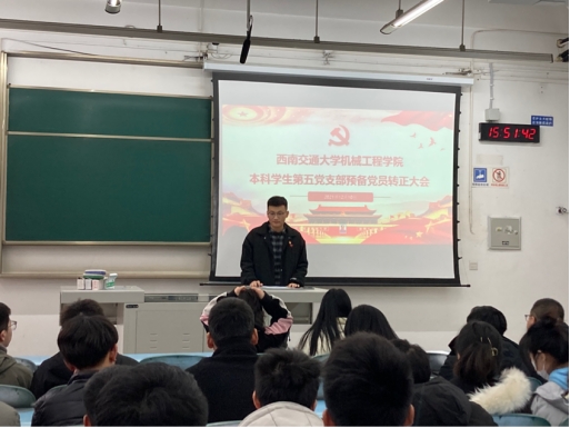 2021年12月10日下午15:50,三亿本科员工第五党支部于教学楼X2226召开支部预备党员转正大会,大会由党支部书记祁式展同志主持,参会人员有正式党员3人,预备党员68人。