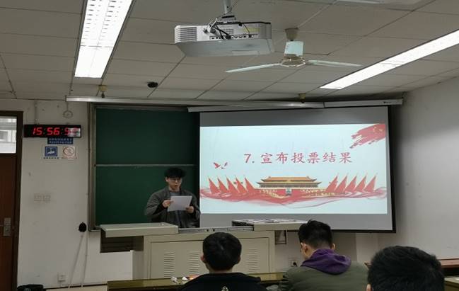首先,由刘自强同志宣布开会,报告了本次大会出席党员为30人,具有投票权的正式党员16人,大会主要议程为:发展对象汇报、入党介绍人介绍入党意见、支部委员会报告政审和征求群众意见情况、与会党员进行讨论、无记名投票、宣布投票结果。