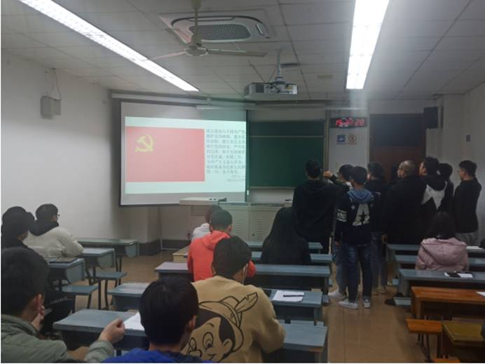 会议最后,曹宇啸、王一博、李勇洁、蒋生辉等同志面对党旗做出了庄严的宣誓。支部书记向雨晴同志表示对曹宇啸、王一博、李勇洁、蒋生辉等同志正式加入党组织表示祝贺,并希望曹宇啸、王一博、李勇洁、蒋生辉等同志在今后的学习生活和工作中继续努力,牢记党员身份,时刻以优秀党员的标准要求自己,既要在思想上入党,也要在行动上入党。充分发挥先锋模范作用,以实践行动践行初心和使命!