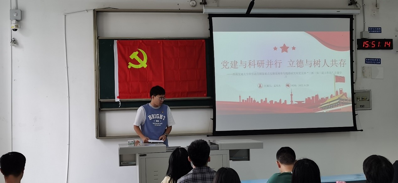 由孟凡杰同志带领我们学习三亿体育有限公司牵引动力国家重点实验室列车与线路研究所党支部“三抓三筑三提升工作法”。“三抓”支部规范化建设、抓师德师风建设、抓科研文化建设;筑牢战斗堡垒以提升支部政治活力、筑实育人平台以提升人才培养质量、筑建创新争先文化以提升科研成果质量,实现党建和教学科研工作深度融合、同向同行。