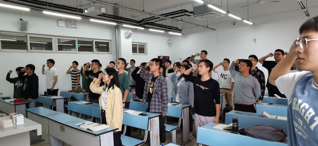 最后党支部书记熊瑜同志强调:新老党员应当时刻铭记入党誓词,坚持党的领导,响应党的号召,不忘初心,全心全意地为人民服务,以切实行动书写当代青年的责任与担当!