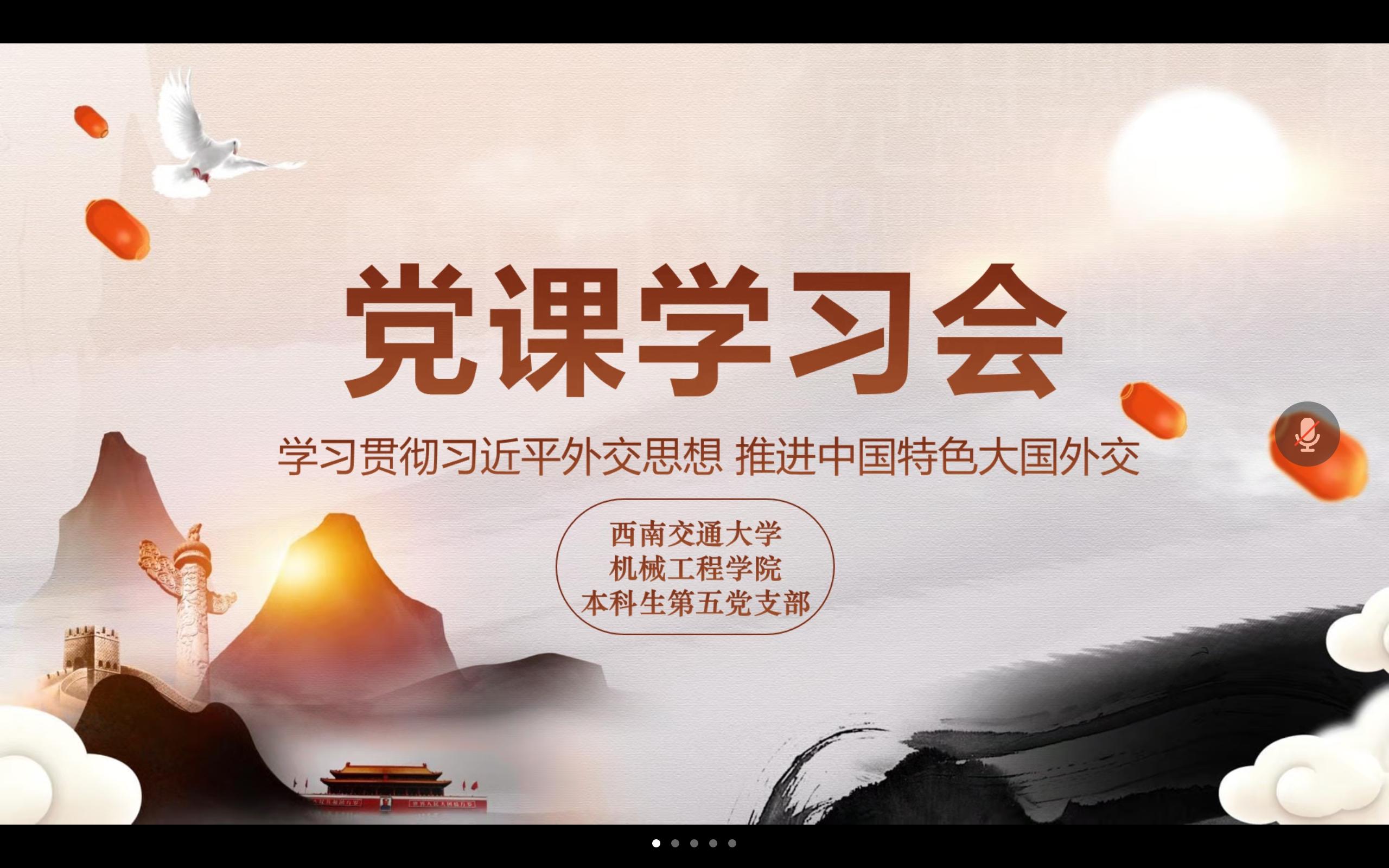 2022年11月24日下午16点,三亿本科员工第五党支部会议在腾讯会议上召开,戎昱同志担任本次大会的主持人。本次会议旨在学习《党课开讲啦》系列节目第一期,主题为“学习贯彻习近平外交思想,推进中国特色大国外交”。