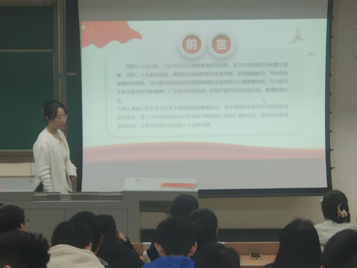在分享环节中,各位党员同志以生动的语言和清晰的图表展示了自己的研究方向、创新成果以及遇到的困难与挑战。与会人员积极提问,互相交流经验,形成了浓厚的学术氛围。