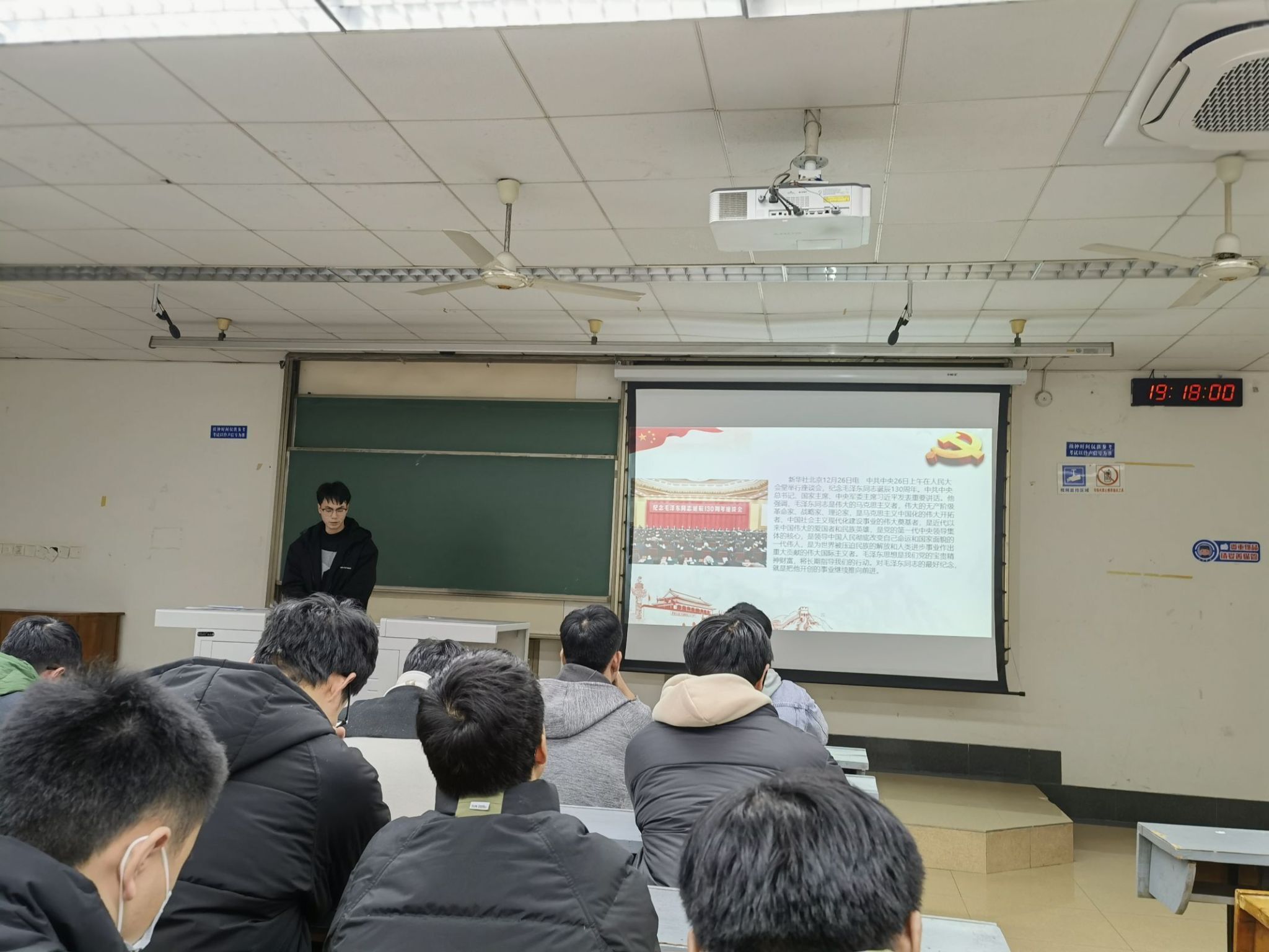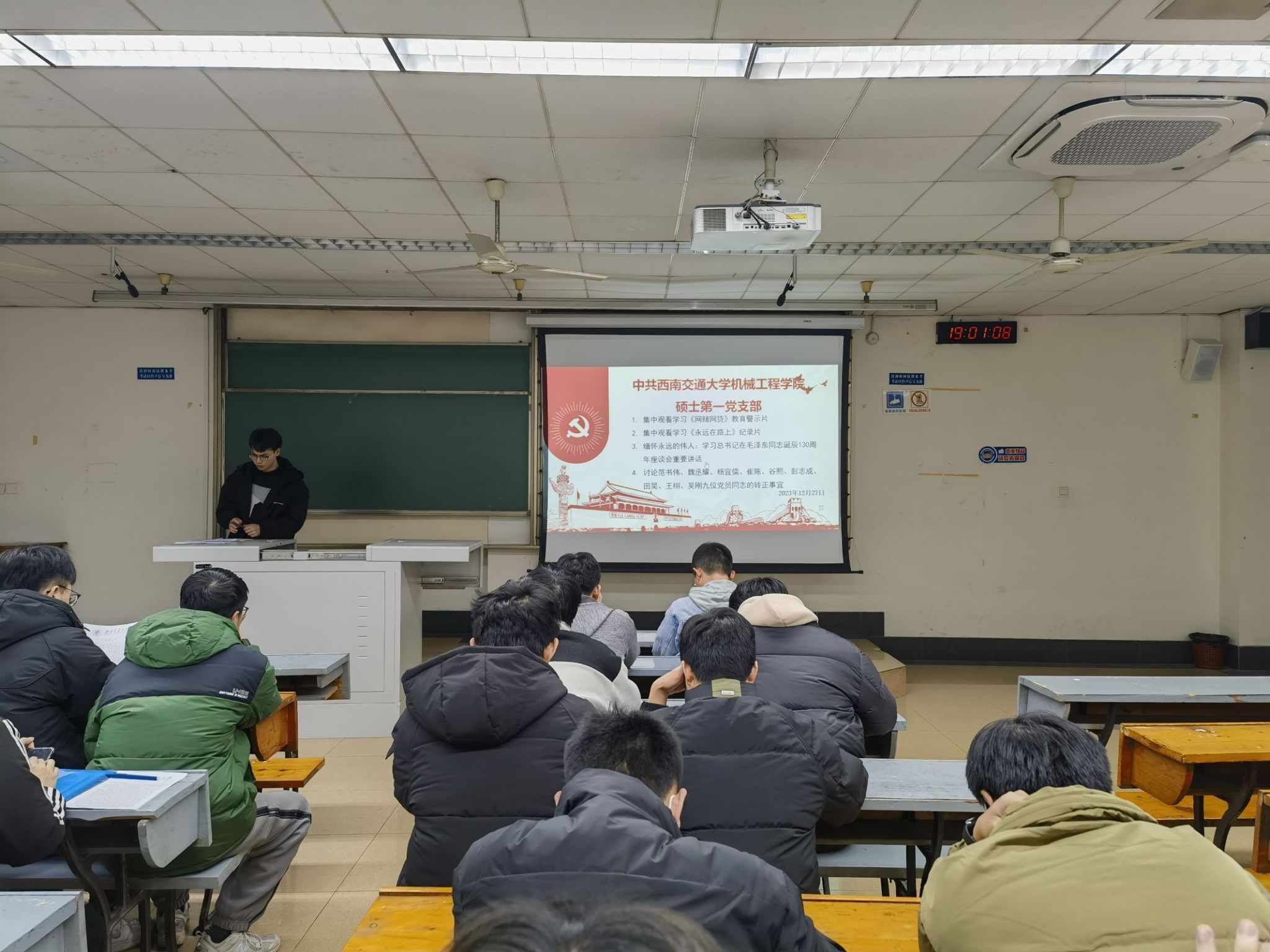 2023年12月27日,三亿硕士第一党支部在九里校区4号教学楼J4407B举行支部大会。活动内容共三项:第一项:集中学习观看《网赌网贷》教育警示片以及《永远在路上》纪录片;第二项:缅怀永远的伟人:学习习近平总书记在毛泽东同志诞辰130周年座谈会重要讲话;第三项:讨论范书伟、魏丞耀、杨宜儒、崔陈、谷熙、彭志成、田昊、王栩、吴刚九位党员同志的转正事宜。本次会议由曾鸿同志主持。