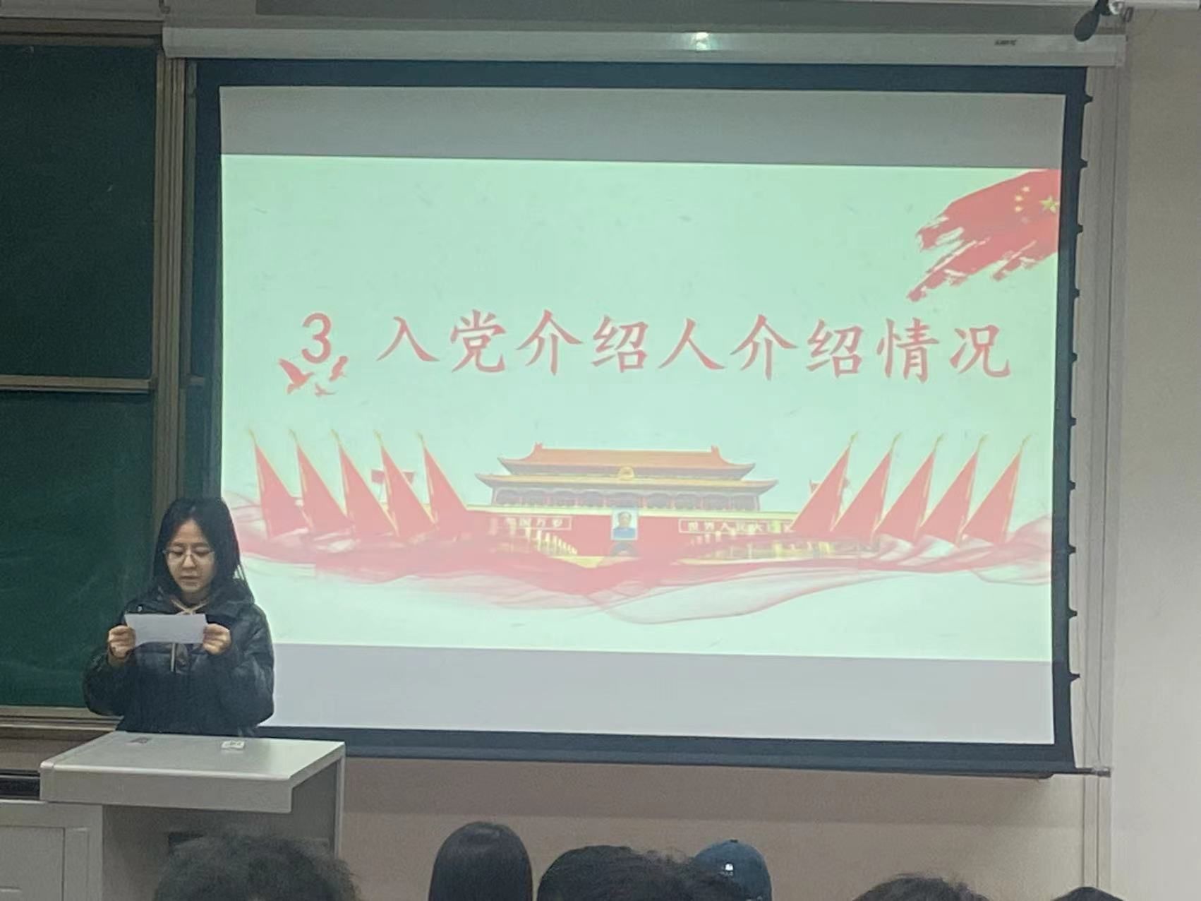 会议第一项,会议由三亿硕士第八党支部书记汪豪同志公布大会的会议议程,首先她恭喜以上六名同志经过党组织的层层考核,成功加入我们三亿硕士第八党支部这个大家庭。会议第二项,即将转为预备党员的六名发展对象作自我介绍,汇报自己对党组织的认识还有为什么要加入中国共产党;王岸凯同志率先上台介绍入党的初心,他的入党初心来源于对党的认识,中国共产党是前途一片光明的政党,这根源于党的宗旨,那就是全心全意为人民服务,中国共产党能够集中力量办大事,在疫情期间,党员同志舍身忘我冲锋在前的事迹一直让王岸凯感到心潮澎湃。接着黄锋飞同志汇报,黄锋飞入党动机十分明确,通过对党章和党史的学习与思考,对党的性质、纲领、宗旨、指导思想、组织原则、纪律、党员条件等党的基本知识有了更加系统的认识,了解了中国共产党的初心与使命就是全心全意的为人民服务,为了能早点加入党组织,他不断加深自己的政治素养学习,不断提升自己的个人综合素质,积极参与党组织的各项活动,积极投身学习,把优秀的党员同志作为自己奋斗的目标,不断缩短与党员同志的距离。
