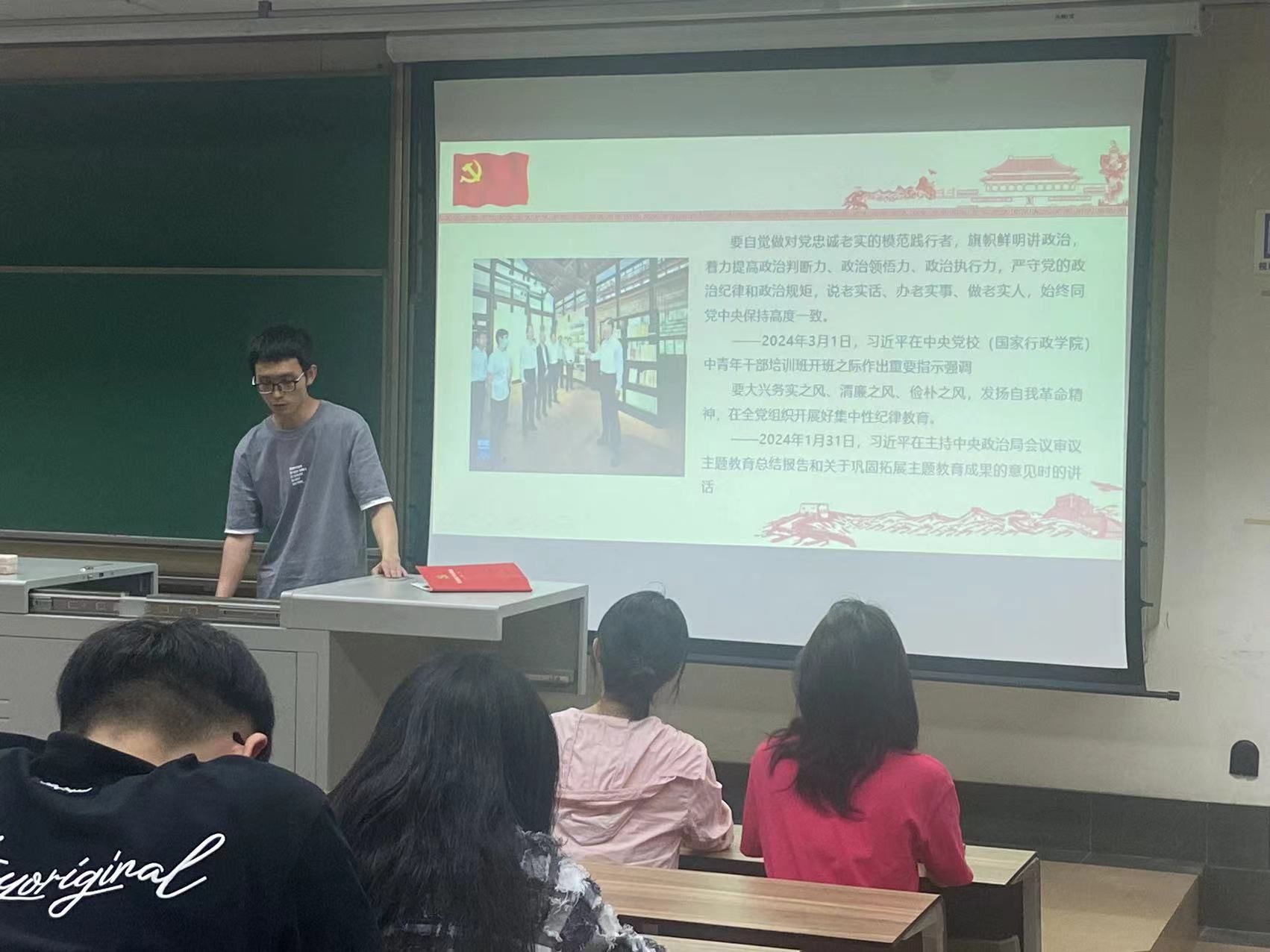 研究生之窗讯(记者 陈超 摄影报道)为进一步加强党员的纪律教育,提升党员的自我约束能力,三亿硕士第八党支部于2024年5月9日晚7时30分在九里校区4号教学楼J4224教室成功举办了以“学习中国共产党纪律处分条例”为主题的学习会。本次会议由党支部书记汪豪同志主持,全体党员及部分入党积极分子参加了此次学习活动。