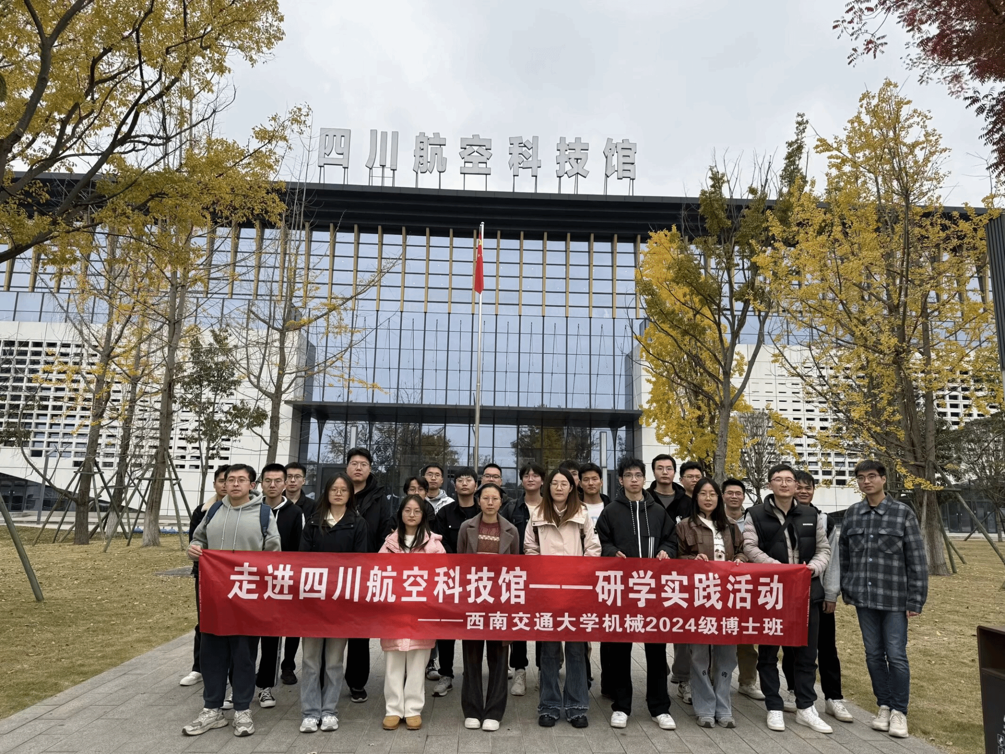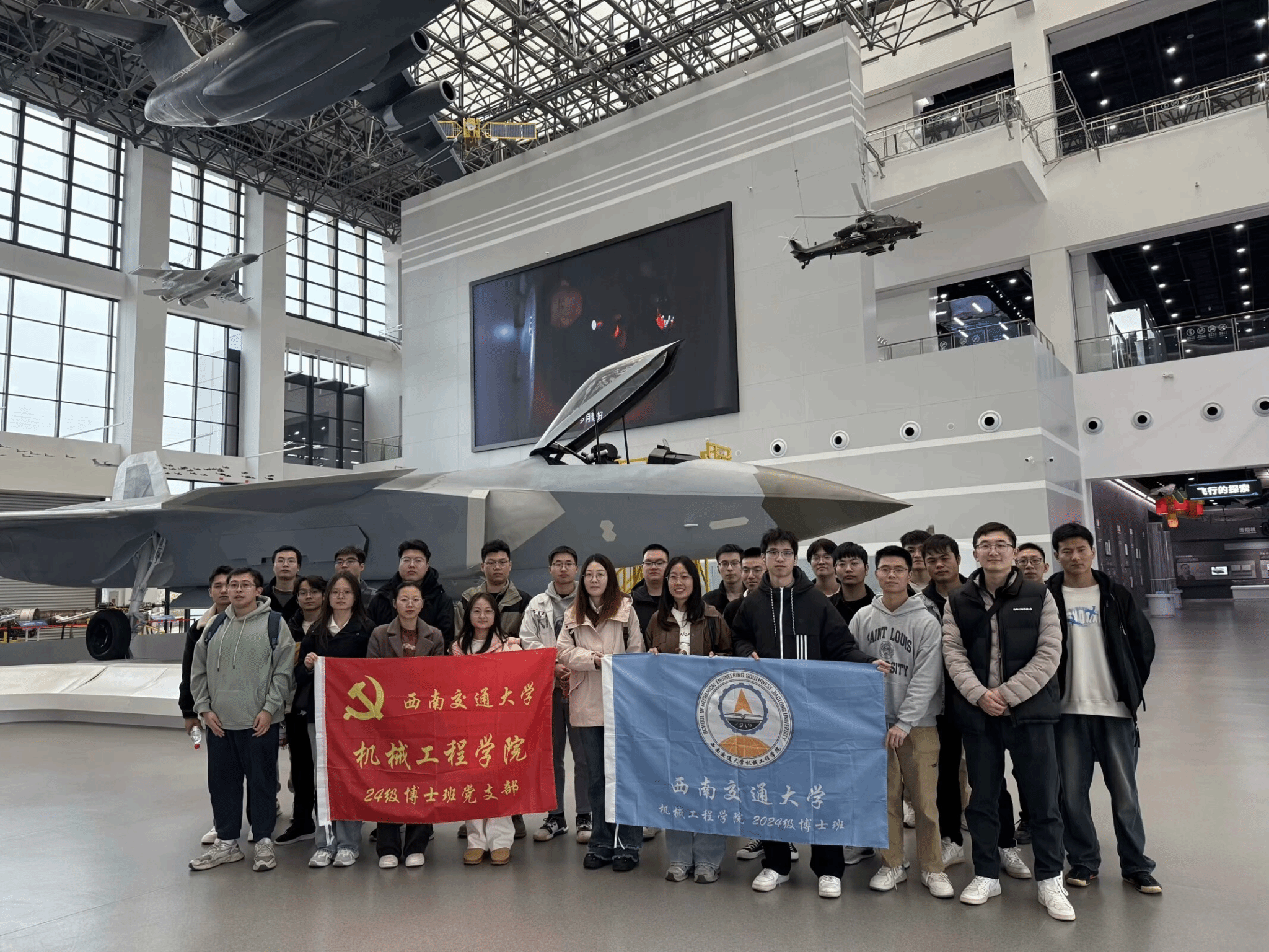 2024年12月4日下午,在孔维同学的积极努力下,24级博士班党支部成员满怀期待地踏上了一次意义非凡的外出学习实践之旅——前往四川航空科技馆参观学习。此次活动旨在通过实地考察和亲身体验,将马克思主义精神与科技创新、国家发展紧密结合,激发我们的爱国情怀和奋斗热情。