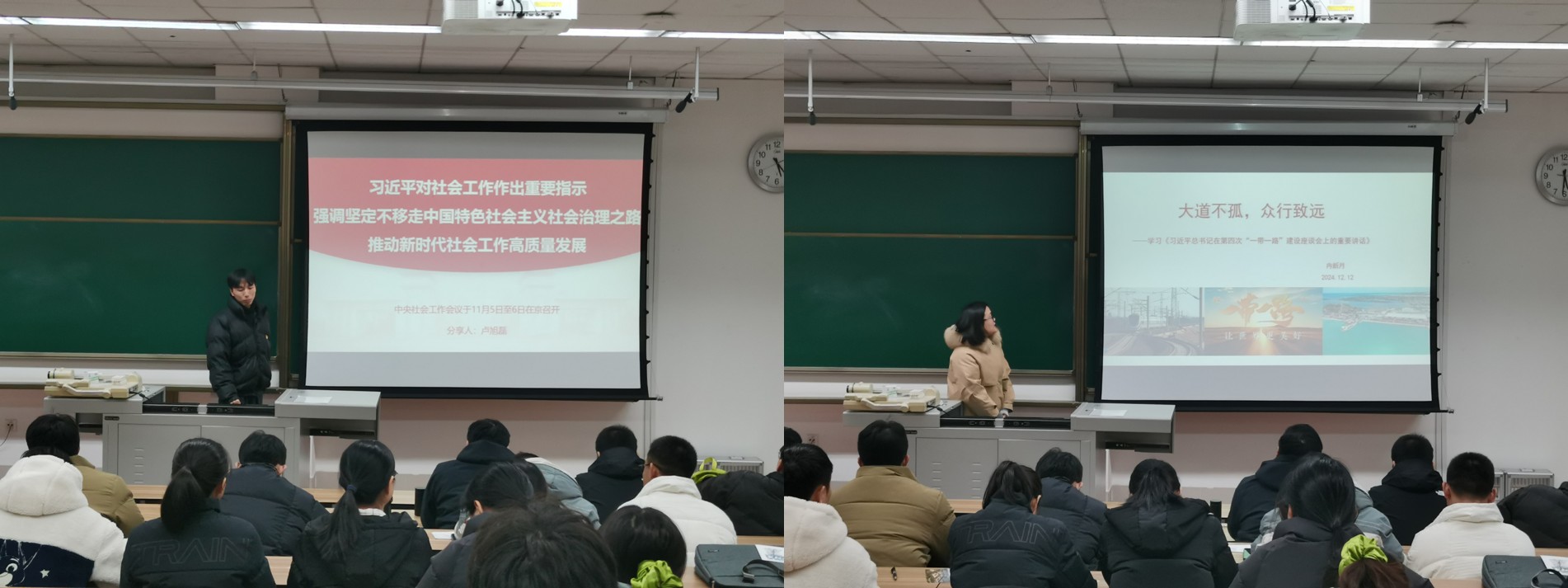 接下来,23级博士党支部组织委员卢旭磊同志就《习近平对社会工作作出重要指示强调坚定不移走中国特色社会主义社会治理之路推动新时代社会工作高质量发展》进行了专题讲解,分析了习近平总书记关于社会治理的核心理念,并强调党员要在推动社会治理现代化中发挥重要作用,促进社会工作高质量发展。
