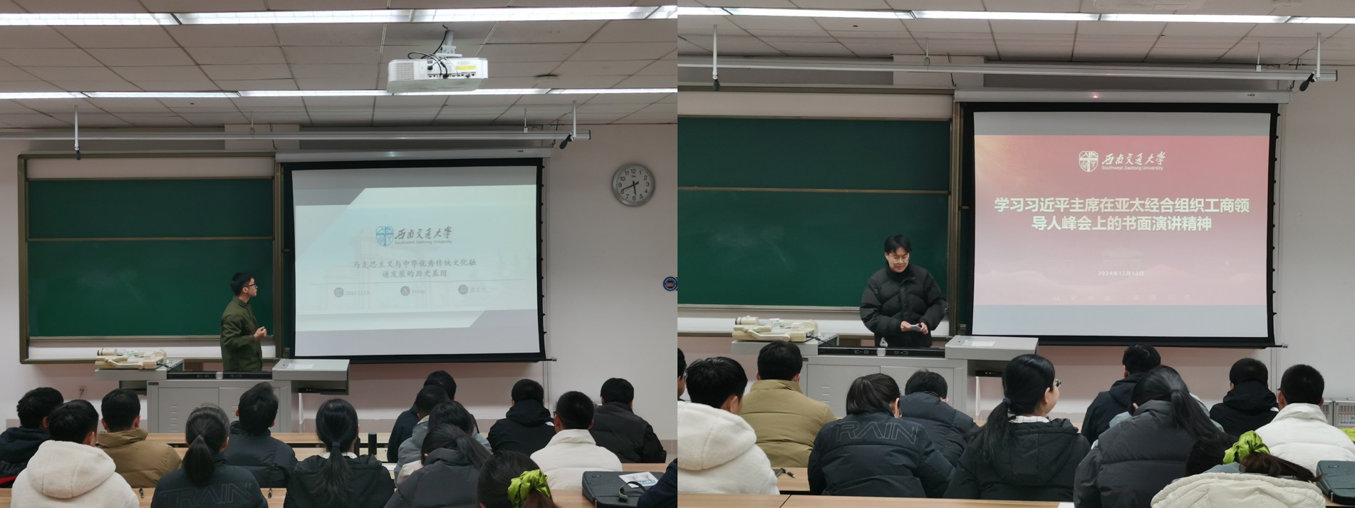 马克思主义公司博士党支部冉新月同志作了《习近平总书记在第四次“一带一路”建设工作座谈会上的重要讲话》的分享,详细解读了“一带一路”倡议对我国对外开放及全球合作的重要意义。指出,党员应增强全球视野,在推动“一带一路”倡议实施的过程中,积极为国家和世界的发展贡献力量。