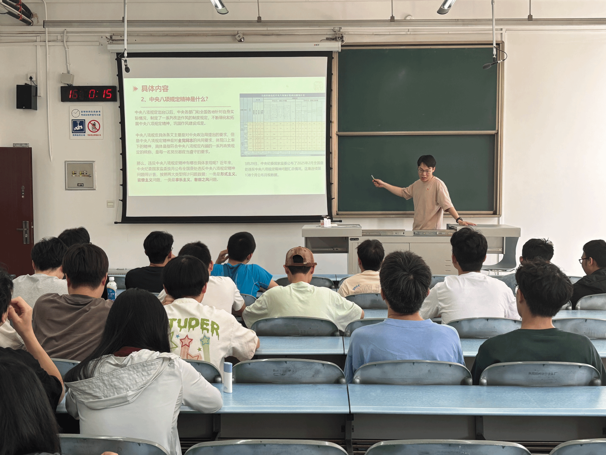 最后,张翔老师带领大家学习了习近平总书记关于作风建设的重要论述,向全体成员强调,中央八项规定绝非“一阵风”,而是全面从严治党的长期战略,是党保持先进性和纯洁性的重要保障。员工党员作为青年群体中的先进代表,更应以更高标准严格要求自己,将中央八项规定精神作为日常行为的“指南针”,不断增强纪律意识和规矩意识,在学习和生活中充分发挥先锋模范作用,以自身行动影响和带动身边同学。