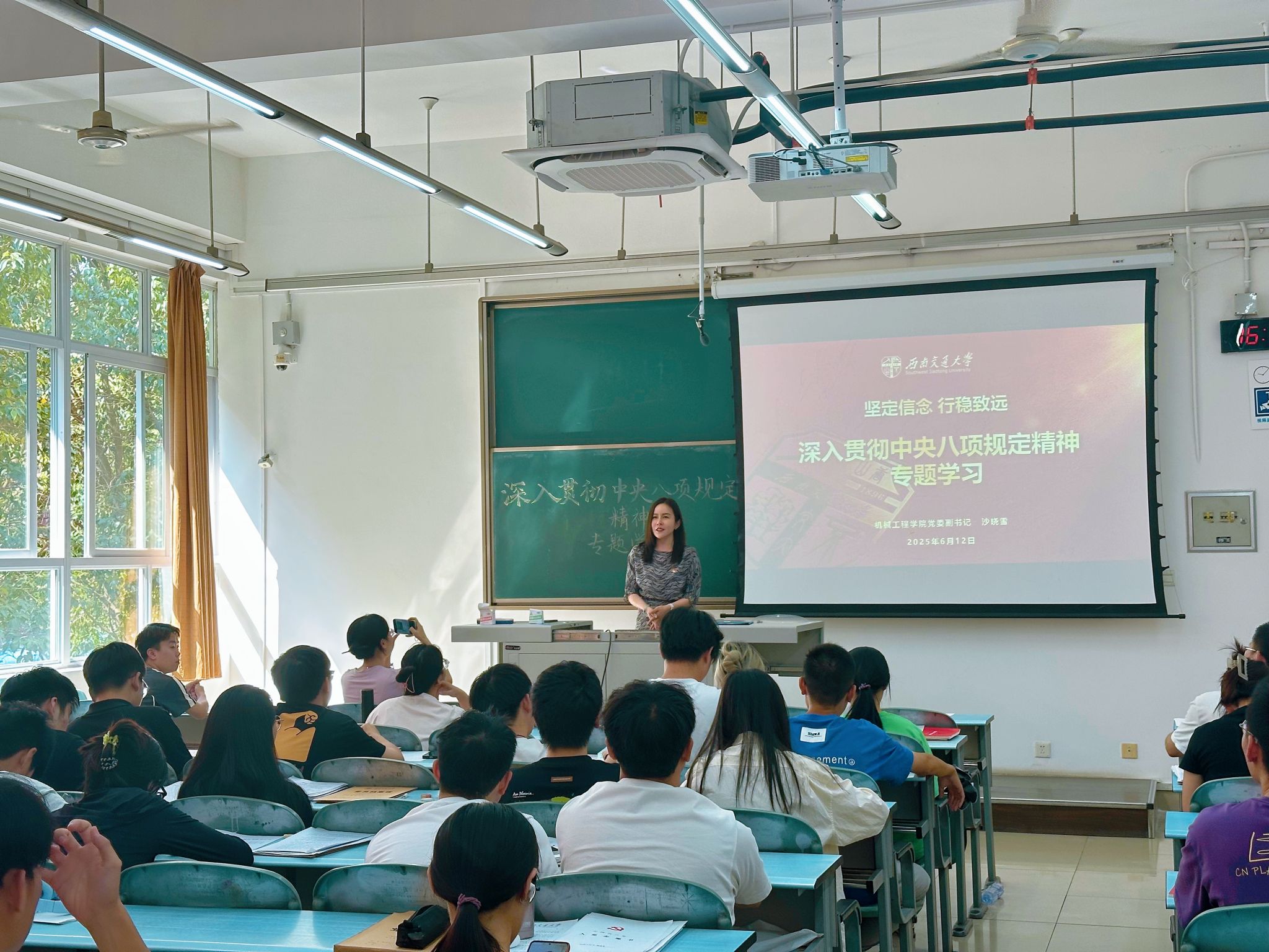 会议伊始,公司党委副书记沙晓雪以 “坚定信念,行稳致远 —— 深入贯彻中央八项规定精神” 为题讲授专题党课,从历史纵深阐释中央八项规定的出台背景与核心要义,结合 “数字化形式主义” 等典型案例警示 “小节失守” 的危害,以夏明翰、陈能宽等先烈的廉洁事迹号召党员 “筑牢思想防线,守住慎初慎微关口”。