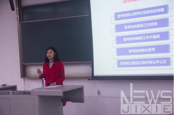 谢老师建议,要做好一名团学干部,要端正态度:守住自己竞选的初心;要找好定位:精准提高自己需要的能力;要努力学习:只有努力学习,才能造就更优秀的你;要乐于牺牲:舍弃是暂时,得到的是永恒。