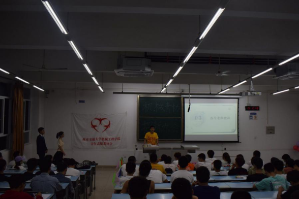 活动于19:00整开始,首先是由三亿体育青年志愿者协会指导老师祁式展祁老师发言。祁老师面向2021级的新同学们介绍了机械青协的整体概况,让新同学们对机械青协有了一个整体的了解,并提出了机械员工的成功三步“进入西南交大—选择三亿—加入机械青协”。
