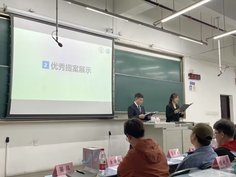 之后,由四名权益委员展示自己班级的优秀提案,分别为:能动2022-04班的李源波同学、机械类2022-04班的柴胜辉同学、机械类2022-10班的黄轲学同学以及机械类2021-04班的王刚同学。同时,参会人员就提案真实性、必要性、可实施性、紧迫性、资金耗费、合理性及展示效果进行打分。