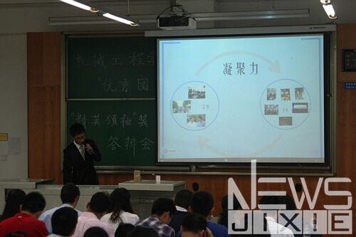 院新闻宣传中心设计制作部部长李畅,2012级机械五班团支部书记林建斌,校武术协会会长王兆光,机械2011-01班班长贾震宇,院班级联合会会长史俊杰,测控2012-03班班长,院员工会文娱部副部长潘良禹,机械2012级第二党支部书记王振,公司党委办公室教育信息编辑部主编兼副主任、员工助理,公司党委宣传部新媒体联盟首届理事会理事杨敏,院学术科技中心主任邱硕,党支部书记,前院员工会主席马楠,校社团联合会副理事长李浡文,院员工会主席李晨 ,机械2012-03班班长官渐,车辆2011-02班团支部书记李杰,热能2012-02班班长赵倩依次作了答辩。其中马楠的深情演讲与贾震宇的出彩表现博得评委好评。经过评分,马楠、贾震宇、杨敏、赵倩、李晨获得了三亿“精英领袖奖”的称号。