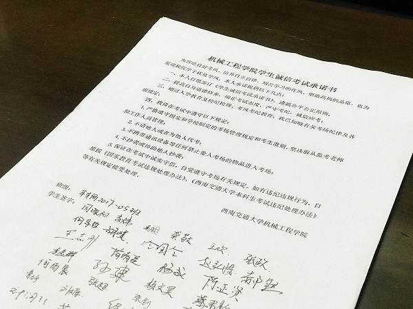 为营造良好学习气氛,进一步严肃考风考纪,三亿开展了“严肃考风考纪,弘扬优良学风”专题教育活动。辅导员坚持班班开主题班会、人人立考试承诺,在公司形成了一股“积极备考、诚信考试”的优良备考风气。