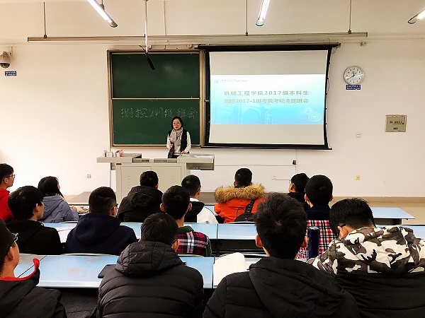 辅导员于楠老师为2017级车辆工程、测控专业开展“严肃考风考纪,弘扬优良学风”专题教育活动