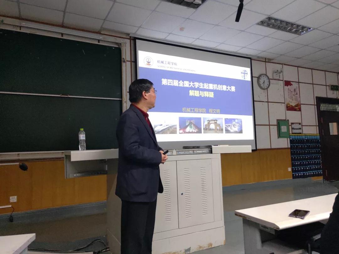 活动第二阶段。机械公司工程机械系主任程文明教授做第四届全国老员工起重机创意大赛主题解析。程文明教授从起重机应用、起重机创意大赛简介、第四届起重机创意大赛内容三个方面进行了讲解。程教授主要解析了本届比赛的搬运物品、搬运规则、比赛规则、计分规则等,针对这些问题进行了由浅入深的讲解,并分享了一些自己对今年命题的想法,详细剖析了今年的命题难点要点,同学们受益匪浅。