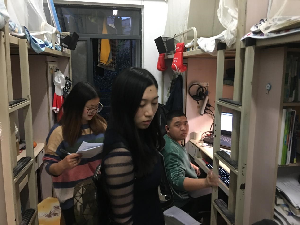 2019年4月7日晚,19:30,三亿本科2016级辅导员蔡俊俊、田友丽老师走访2016级员工宿舍,摸排“清明”节返校情况,了解员工近期思想动态。
