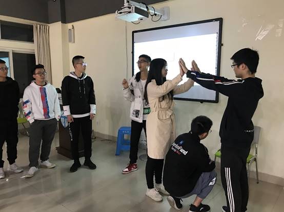 首先,周学长带领学员做了松鼠大树、拍手操等热身运动来使学员熟悉肢体语言同时相互熟悉认识,活跃现场气氛,让学员提前感受肢体语言带来的效果。