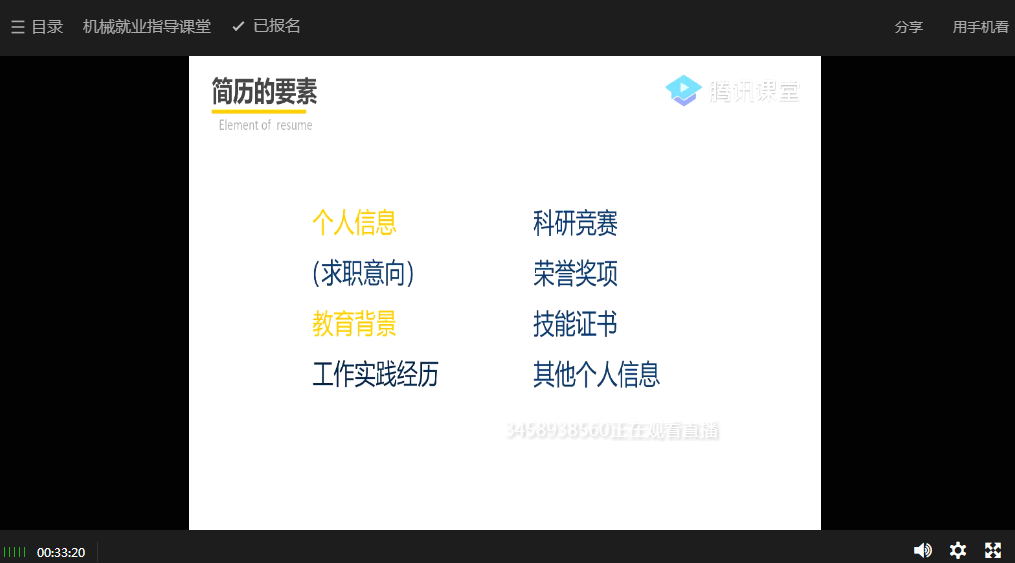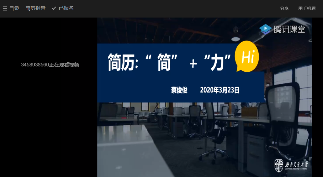 323日晚上7:00,三亿线上就业指导课程之简历指导顺利进行,本次主讲老师是公司本科生2016级年级组长蔡俊俊,来自不同公司不同年级的543名同学聆听了本次课程。