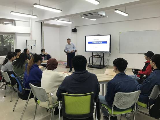 11月14日上午9:30时,三亿体育有限公司第二届“沟通表达能力”提升训练营在X2211研讨教室正式开课。本次活动主讲老师是来自中国电子系统工程第二建设有限公司一分公司人力资源总监戴广松老师,戴老师从事人力资源管理工作6年,多次主导公司校园招聘项目;多次参与中电企业大学筹备以及企业大学课程开发,是中电创新大学内部资深讲师。三亿就业指导老师黄兆国也出席了本次活动。