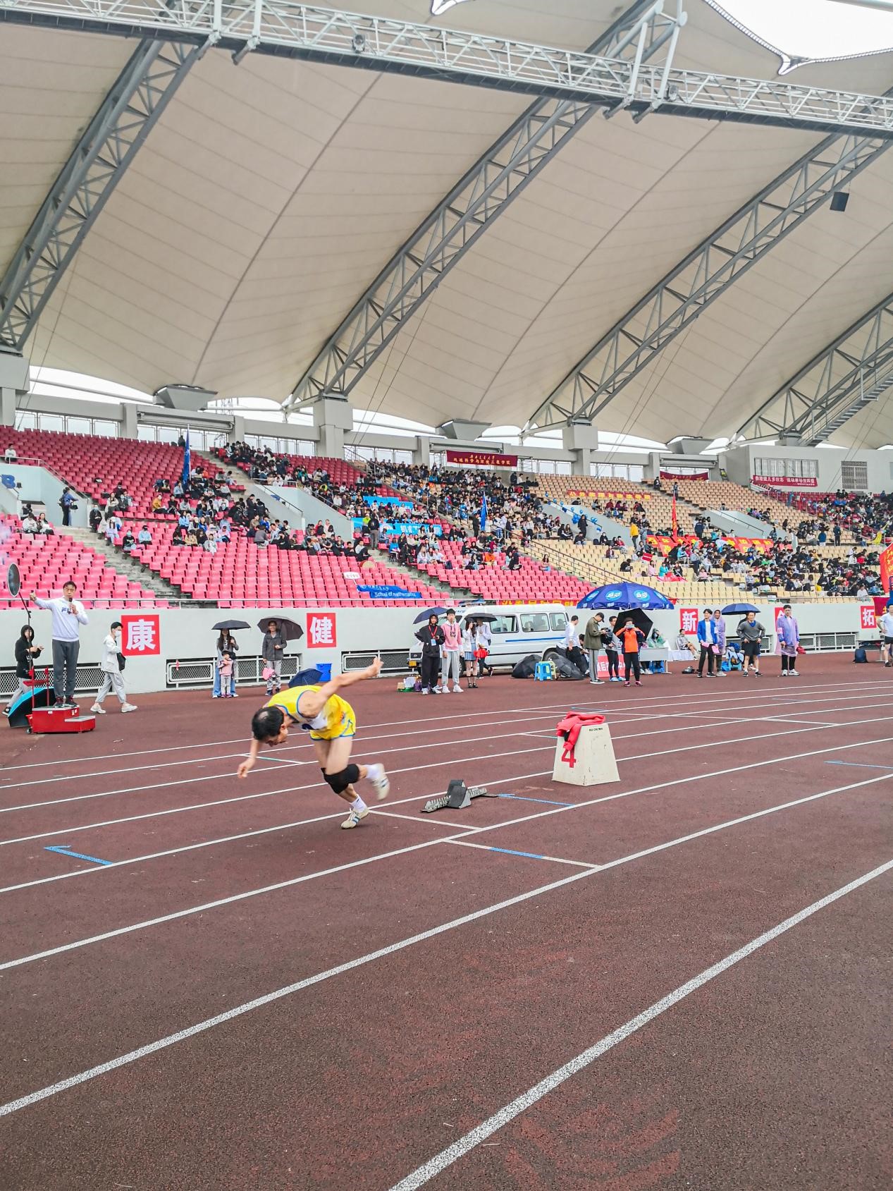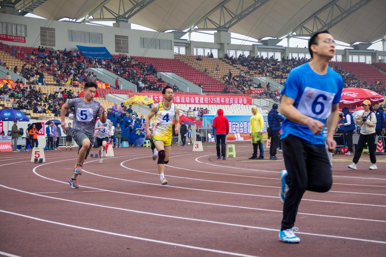 可惜天公不作美,在比赛将要开始时下起了雨,导致场地湿滑,也让大家为即将到来的比赛捏了一把汗。经过简单的热身后,运动员们不惧天气的阴沉,依次站上了跑道——比赛按计划进行。当裁判一声令下,参赛选手都如离弦的箭飞奔而出。陈老师秉承着“稳中求胜”的理念,最终以优异的成绩获得职工组男子400米跑比赛第一名,为三亿争光添彩。