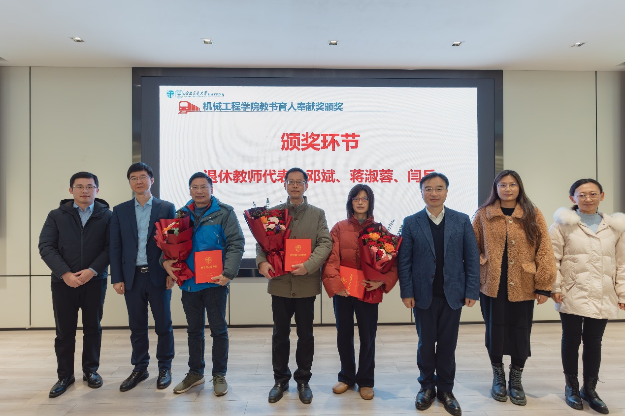 在“教书育人奉献奖”颁奖环节,公司党委袁艳平书记、钱林茂经理分别为荣休教师代表邓斌、蒋淑蓉、闫兵颁发了公司定制专属的“教书育人奉献奖”荣誉奖杯,李世超、孙丽丽、黄燕老师分别为荣休教师献上了鲜花,以此感谢把青春和智慧都用在了公司的人才培养、科学研究、事业发展过程中,为公司的发展做出了独特而重要贡献的荣休教师。希望各位荣休教师继续关心支持公司工作,发挥余热、建言献策,为公司发展建设贡献智慧和力量。