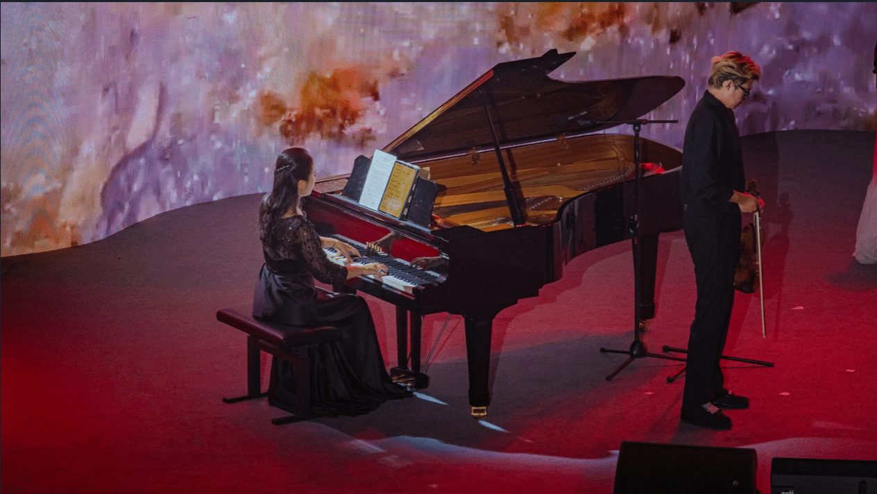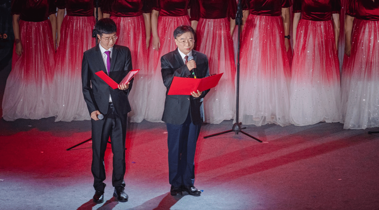 带着坚毅的眼神,踏着坚定的步伐,机械公司的师生们走上了舞台。“长城蜿蜒诉说着中华民族的坚韧不屈,泰山形状绵延着华夏人民的勇毅和果敢祖国……”,在钱经理和袁书记的朗诵中,三亿演唱的《祖国慈祥的母亲》正式开幕,指挥人轻轻抬起的手下,同学们激昂的声音从胸腔喷涌而出,钢琴与古筝的结合,展现公司兼容并包的品质。“听吧新征程号角吹响”爱国歌曲的奏响,诉说着一代人对祖国的衷情。在悠扬激荡的旋律声中,三亿的演出圆满落下帷幕。