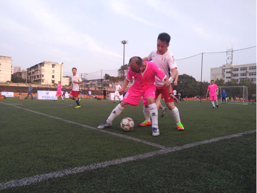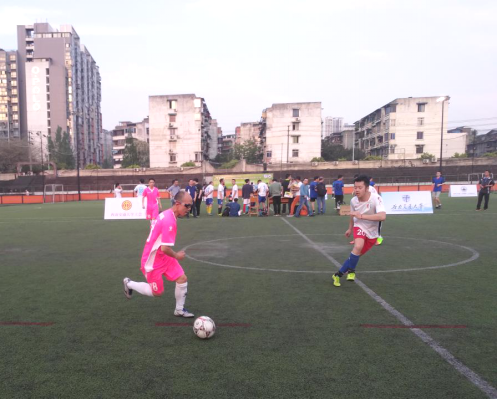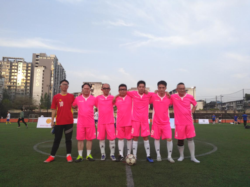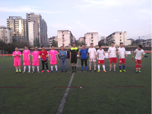 机械公司教职工足球队身着粉红色球衣,斗志昂扬地走上了赛场,他们第一场的对手是身穿白色球衣的物理公司教师足球队。物理公司的教职工队伍要比机械公司队伍年轻不少,在身体和体力上占据一定优势,而机械公司足球队在技术和经验上更胜一筹。双方实力在伯仲之间,这注定是一场激烈且精彩的比赛。