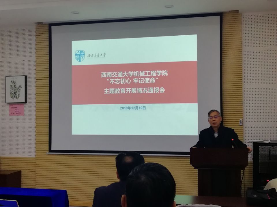 然后,董书记对机械公司“不忘初心 牢记使命”主题教育开展情况进行了通报。公司成立主题教育工作小组,召开全院教职工大会进行宣讲动员,组织中层领导干部和各党支部采取“专家导学、集中研学、个人自学”的方式进行学习,认真领会主题教育的必要性和重要性。设立了党员先锋岗和党员责任区,设岗定责,承诺践诺。制定了主题教育工作方案,按照学习教育、调查研究、检视问题、整改落实贯穿全过程的要求,从公司党委、中层领导班子和领导干部、公司师生党支部三个层面全面组织推进落实。