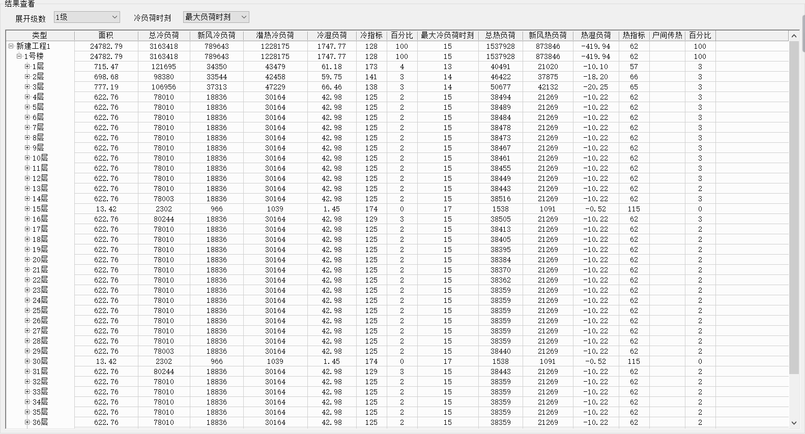 (3)空调负荷计算:对夏季工况空调负荷进行计算,相同建筑物标准层负荷可采取成果共享的方式完成该建筑物总负荷计算。