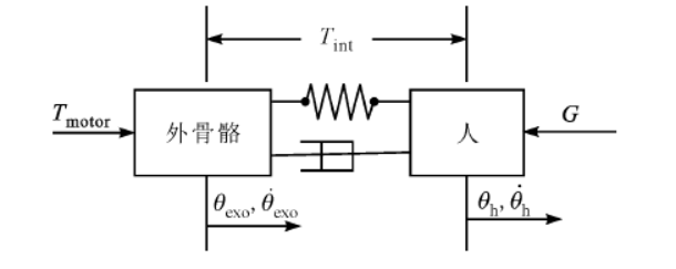 (2)将外骨骼和患者的交互力简化为阻抗模型,依据阻抗模型设计阻抗控制算法让外骨骼表现出期望的柔性,同时外骨骼机器人可以通过阻抗模型感知到患者的残余肌肉力量,从而适应性的调整训练轨迹。这样外骨骼机器人和患者之间就在物理层面上建立了力的交互,同时能够在认知层面上使患者了解外骨骼的能力,始终能有自己在控制外骨骼机器人的感觉。