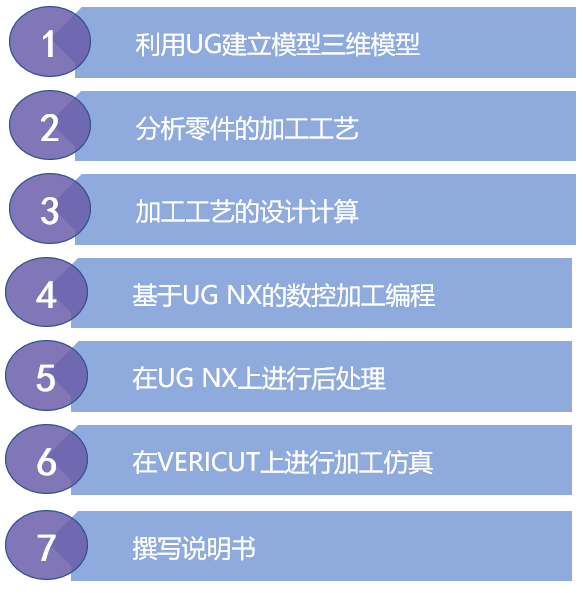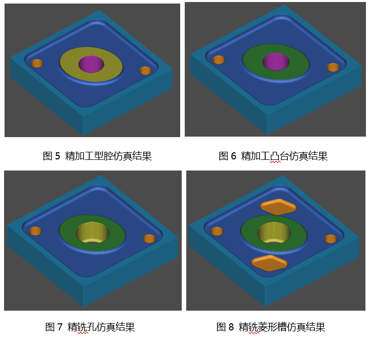 回答:模具型腔零件的加工工序共有十步,按照加工作用,将其划分为四个部分,依次是粗加工、钻孔、精加工、铰孔。在UG NX软件中,依次创建十个工序,分别得到仿真结果。为了更为直观地描述,更方便地生成后处理文件,将这些工序归纳为上述四个部分。
