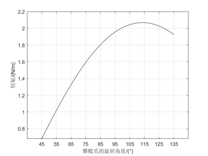 答:从方案二的速度与加速度仿真曲线图,可以看出其速度突变和加速度突变都发生在旋转角度为45°和135°的时刻,即攀爬爪恰好与绝缘子表面接触的时刻,因而可以分析得出在同一周期内,攀爬爪与绝缘子表面接触次数越多,其速度和加速度突变次数就越多,其产生的冲击效应就越大。应用到方案三,其攀爬爪与绝缘子表面的接触次数最多,其冲击效应就最高。