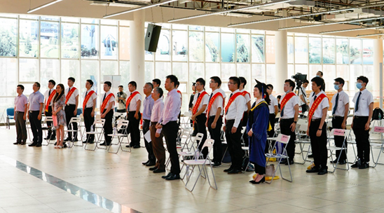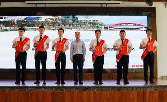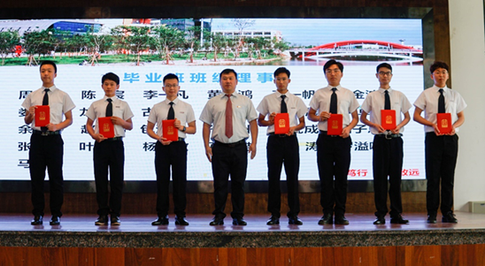 典礼进行第四项,田怀文副经理为校级优秀毕业生代表颁发了优秀毕业生证书并合影留念。