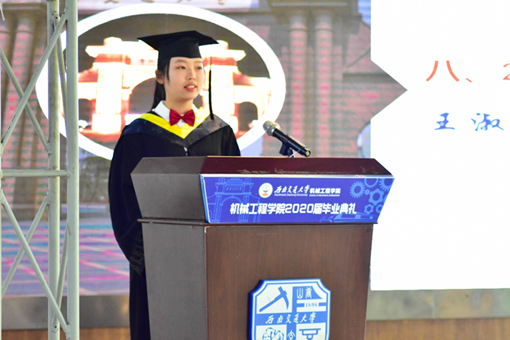 接下来是研究生毕业生代表管奇卉同学和本科毕业生代表王淑莹同学的发言,她们回顾自己与同学们在这几年的经历与成长,对母校、母院、老师、同学表达了最真诚的谢意与祝愿。