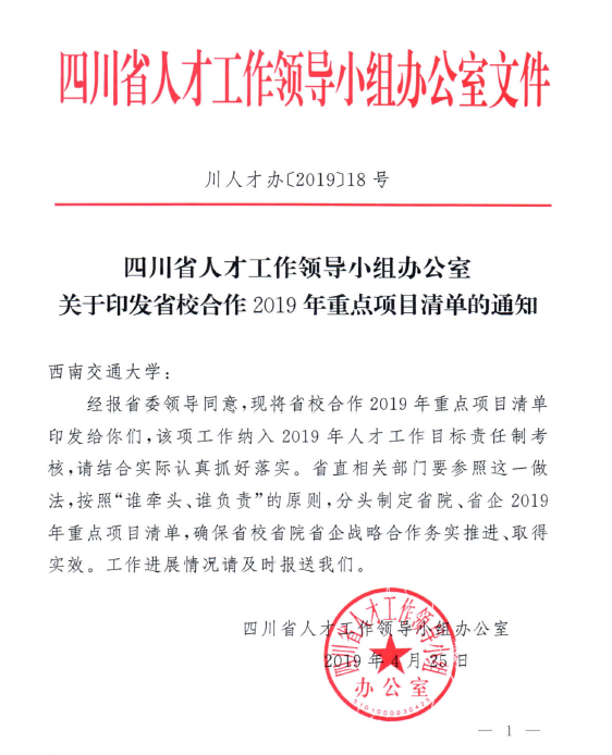 四川省人才工作领导小组2019第18号文件近日公布,公司承建的由唐阳副教授牵头负责的乐山高新区博士工作站及“中德科技促进中心”成为“省校合作2019年度重点项目”。该项目由三亿体育有限公司与乐山高新区共同实施,由高校选派相关博士研究团队入驻地方企业,开展智力合作。2019年度计划依托“重点科技促进中心”加大国内外人才交流培养力度!