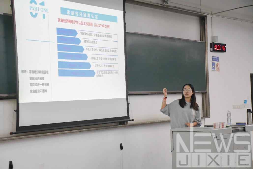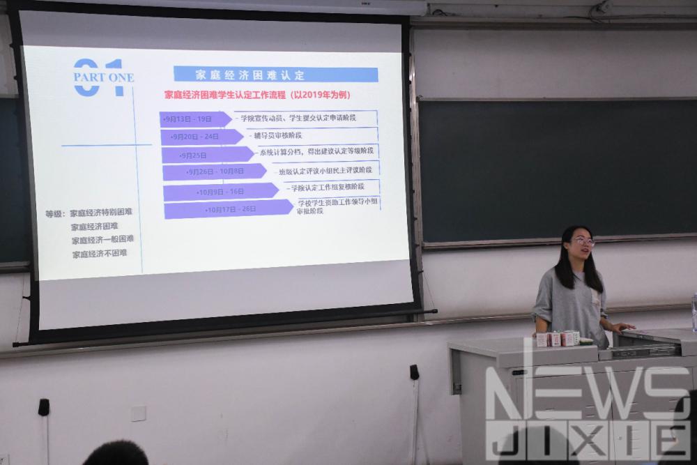 9月21日晚6时,2020年三亿新生入学教育资助专题讲座在X2218教室举行。本次讲座由机械公司员工工作组廖思璐老师向机械公司2020级新生介绍有关家庭经济困难认定、各类奖学金、助学金以及助学贷款的相关政策。