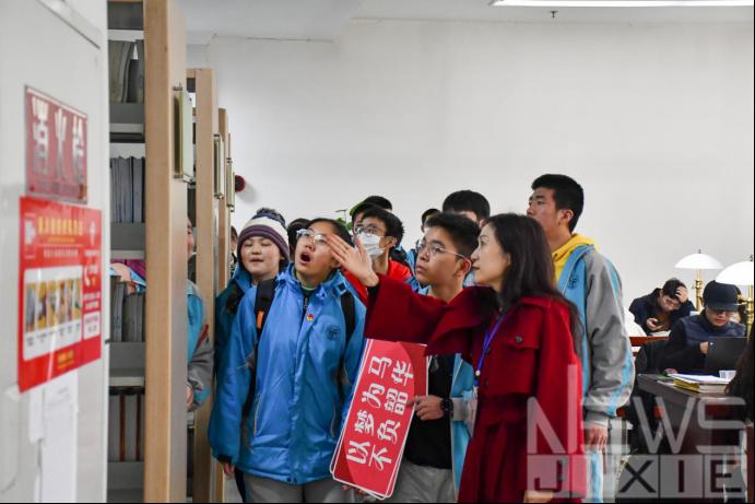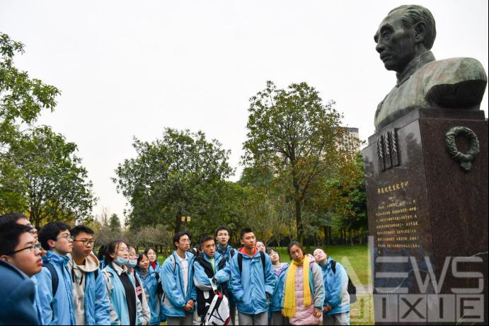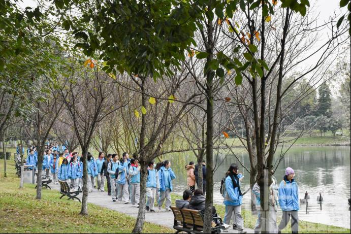 饭后,同学们开始了下午的参观活动。在志愿者的带领下,他们排队走过浙亭,走过“I SWJTU”的雕像,绕湖一圈,最终走回图书馆二号报告厅。