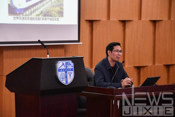 在二号报告厅,黄运华副研究员给同学们作了题为《高速铁路与高速动车组》的科普知识讲座。黄老师先从“火车”这一大家所熟知的名词入手,逐渐向大家普及机车、车辆、动车、拖车等铁路专业名词的基本概念。然后又从大家都亲身体验过的动车追本溯源,向同学们介绍了铁路的发展历程、动车的发展历程、中国高铁的创新历程,还简要地介绍了世界各国的铁路列车情况。介绍过程中,黄教授不断地提些小问题,与同学们互动。黄老师劝勉同学们要好好学习,并希望他们能在三年后的高考中考出理想的成绩。