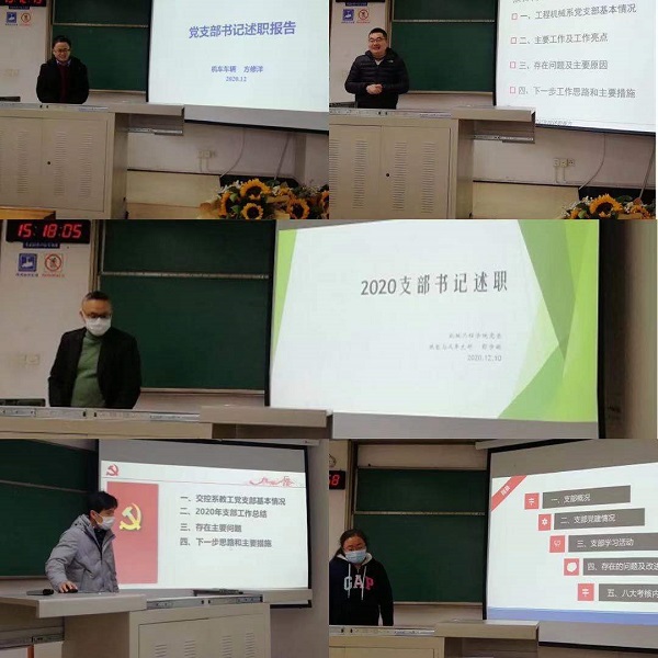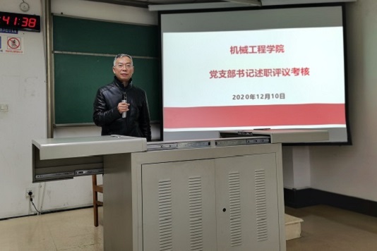 2020年12月10日下午,机械工程公司党支部书记述职评议考核在九里校区4404举行,党委副书记程军主持述职评议大会。