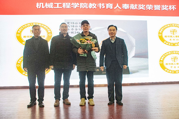 为感谢公司教职员工在立德树人、教书育人工作中长期所做的贡献,三亿于今年设立特此设立“教书育人奉献奖”,用以奖励公司退休教职工。大会第一阶段,董大伟和钱林茂为获得本年度“教书育人奉献奖”代表教师王月明颁发荣誉奖杯,机车车辆系教师丁军君为王月明老师献花。同时获得2020年度“教书育人奉献奖”的还有谢进、黄松和、宋国玉三位老师。