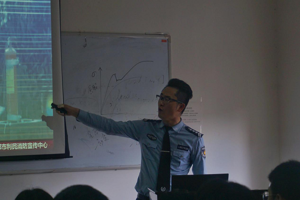首先由成都市利民消防宣传中心胡教官为师生开展实验室消防安全培训。胡教官从火灾的危险性、防火灭火措施、消防设施及灭火器材和人员疏散逃生等相关知识展开介绍。倡议师生在平时要做好防火灭火的措施;实验室、住宅等场所内应配备完备、有效的消防安全设施。要根据室内可能发生的火灾类型而配置正确的灭火器。胡教官还介绍了消防设施及灭火器材的操作使用方法、人员疏散逃生等相关知识,让在座师生获益匪浅。