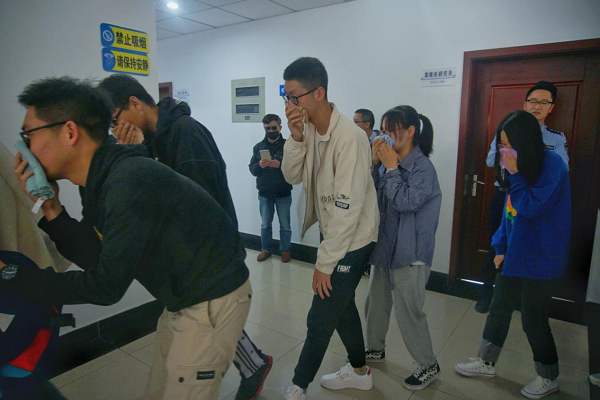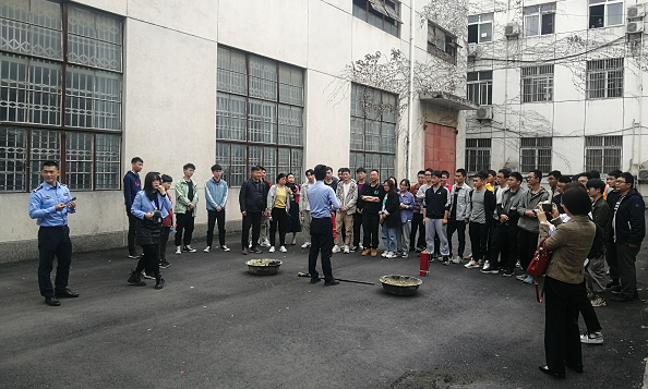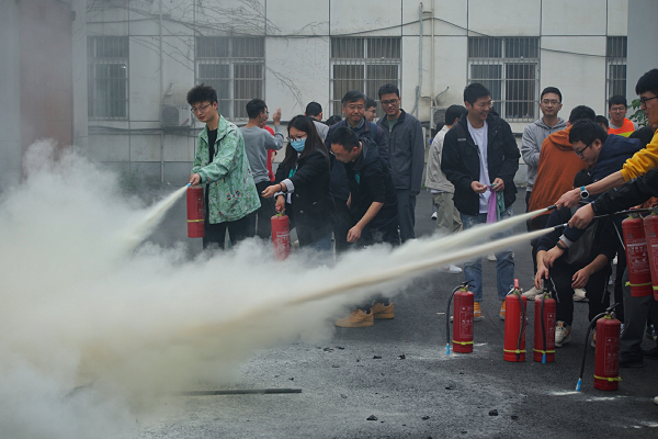 活动的最后阶段是消防灭火演练。在摩擦学研究所旁边空地上,教官指导师生使用灭火器扑灭火盆中的火焰。