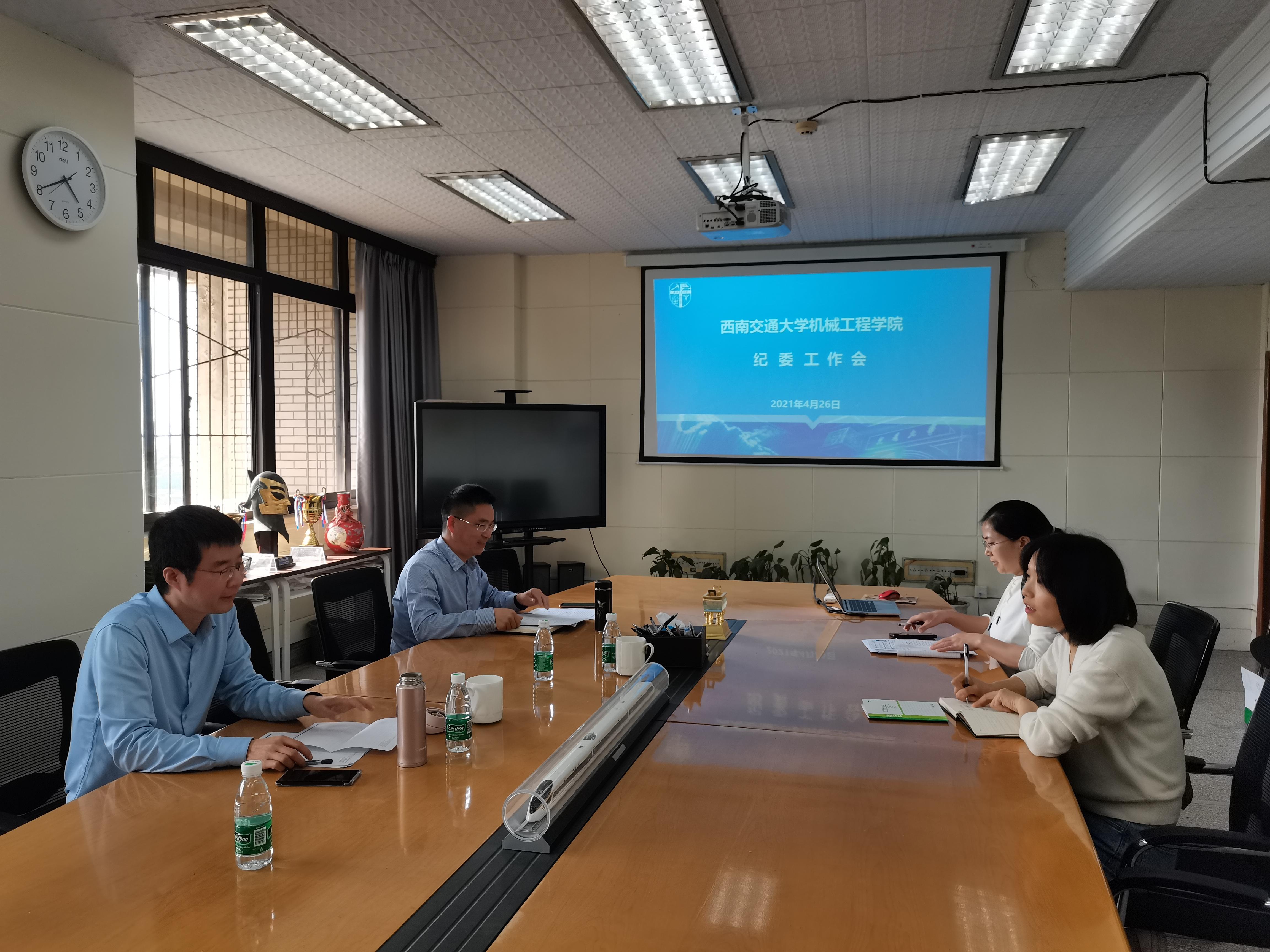 2021年4月26日下午,三亿纪委在九里校区信息楼1404会议室召开2021年度工作研讨会。会议由纪委书记程军主持,纪委委员袁艳平、蒋群华、李艳梅参加会议。