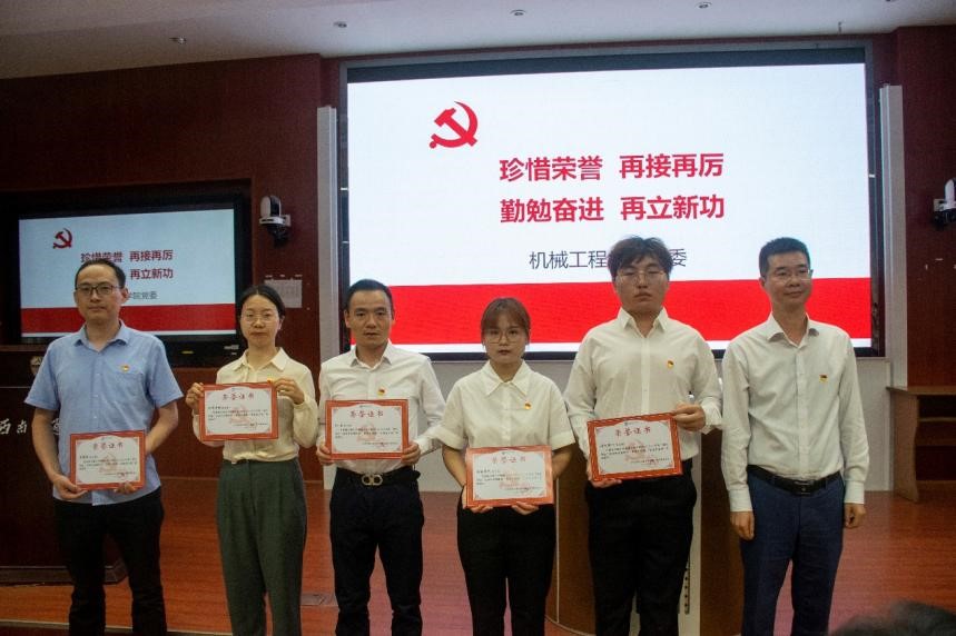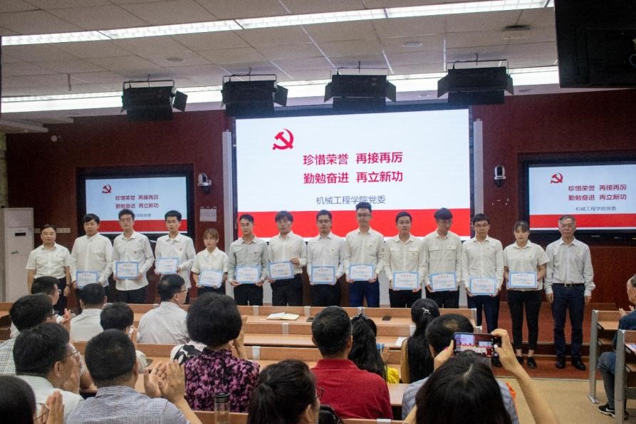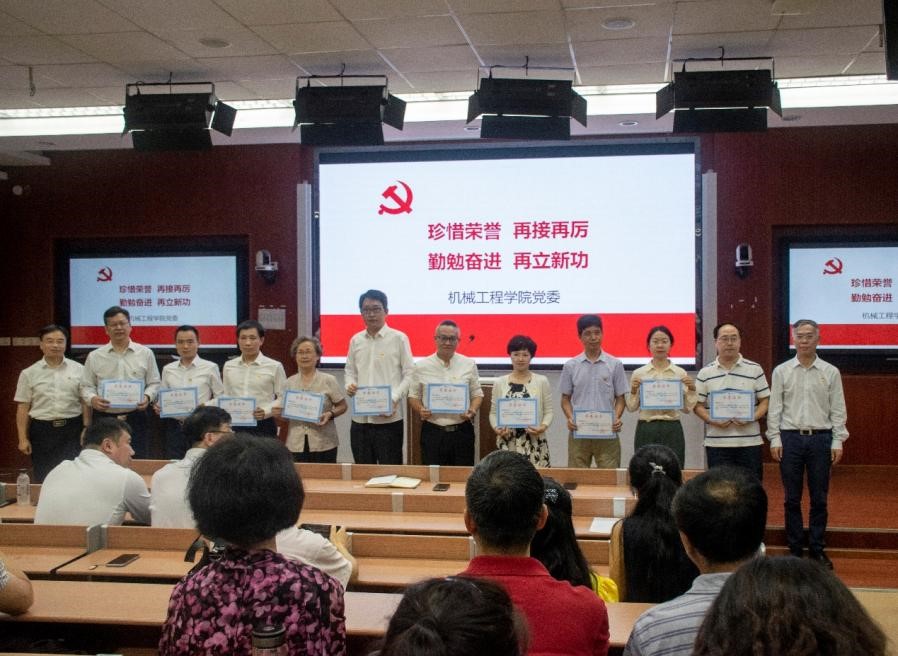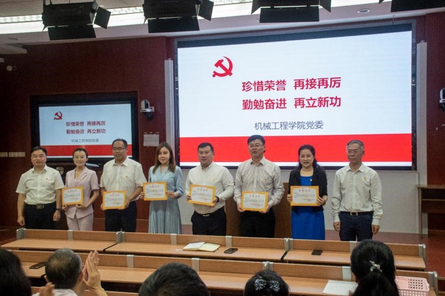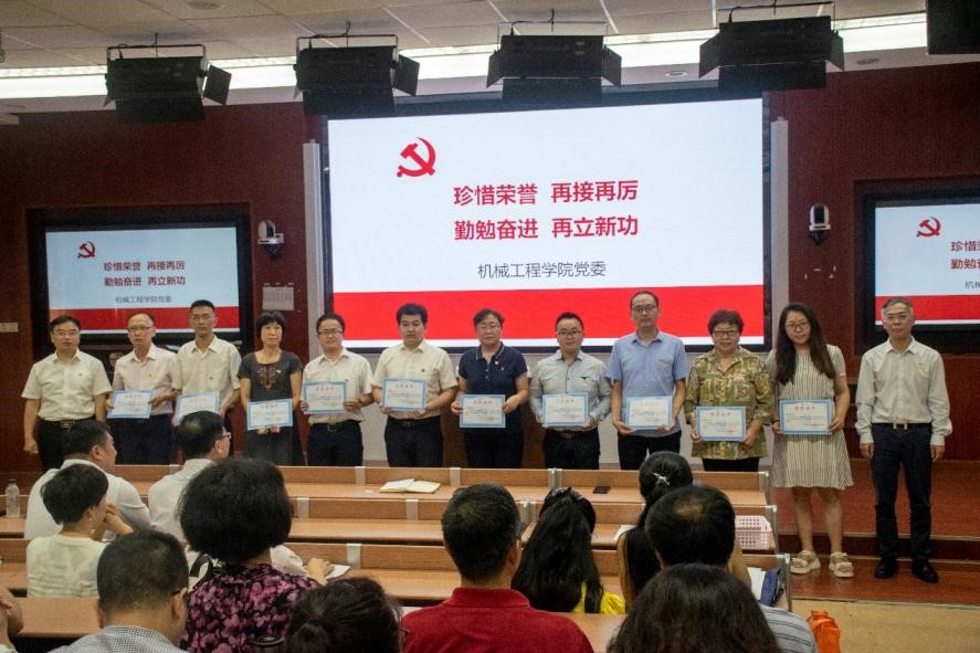庆祝中国共产党成立100周年,深刻感悟党的百年奋斗史和历史性贡献。为进一步激励广大共产党员坚定信念、鼓舞全院师生不忘初心、牢记使命,6月28日下午,机械工程公司党委举行“两优一先”表彰大会暨“光荣在党50年”纪念章颁发仪式。公司党委书记董大伟、经理钱林茂等党政班子成员、党委委员、基层党支部书记、退休党员代表、获表彰的师生党员及全院教职工参加了表彰会。会议由公司党委副书记程军主持。