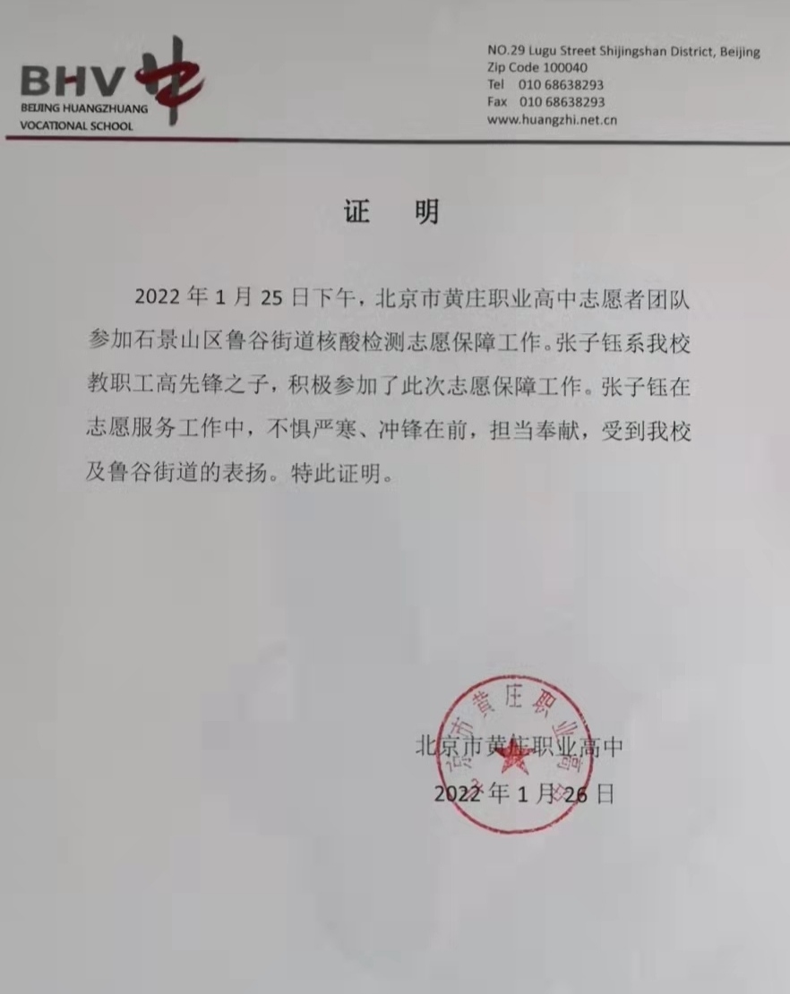 志愿服务圆满结束后,当地社区相关部门对交大机械学子的抗疫志愿服务行为表示高度评价。2月18日,共青团新乐市委员会发来感谢信,感谢王荷茗同学第一时间投入到志愿服务中。2月20日,唐山市丰润区火石营镇火西村村委会发来表扬信,表扬郭荣琪同学主动投身“战疫”线。1月26日,北京市鲁谷街道和黄庄职业高中对张子钰同学提出表扬。